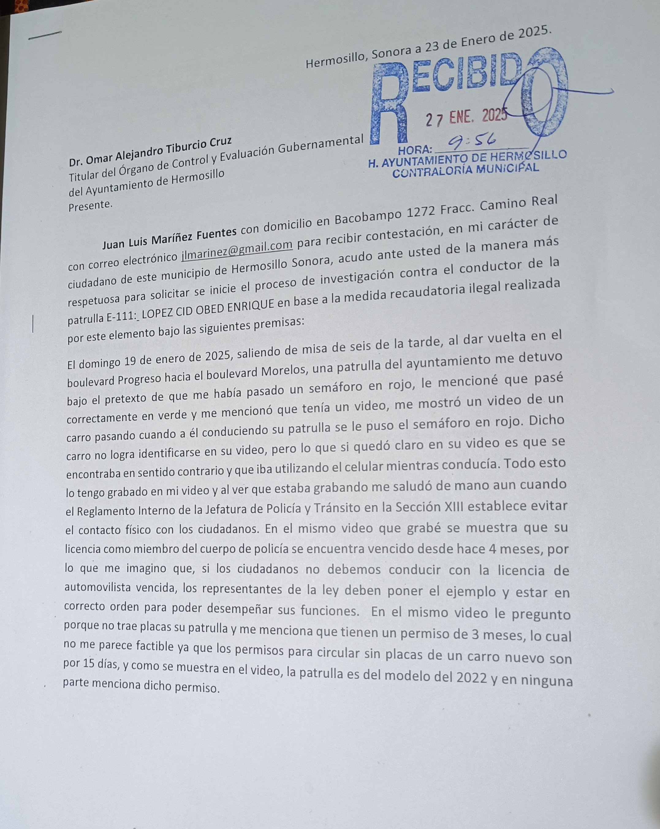 11/21/2025 9:44 AM 1127698 D_Imagen 9 que muestra la primera hoja de la queja entregada es sus oficinas.jpg